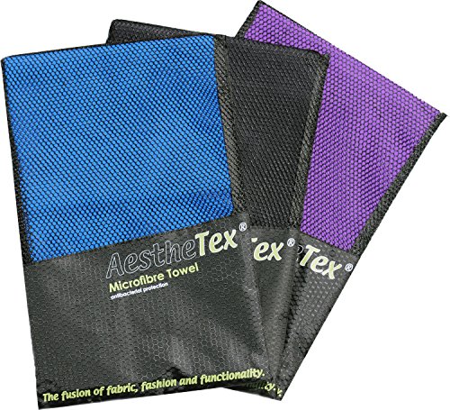 Microfibre Towel with zip carry bag Small, Merium or Large sizes – a quick dry towel in 3 stunning colours (blue, purple & black). Great for travel, sports, gym, camping, swim, yoga, pilates, bikram, beach, bath or at home – the perfect travel towel (Black, Small (100 x 55cm))