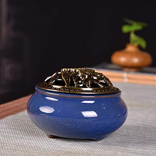 Mini Ceramic Incense Burner Holder Incense Stick Holder(for Sticks, Cones or Coils Incense),Ideal for Yoga, Relax, Meditation or Home Office Gift Cones+Coils Incense(Sapphire Blue)