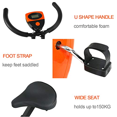 [Adjustable Limitless Resistance]Stationary Bike equipped with a heavy bidirectional flywheel, which could offer more momentum to give you a challenging exercise experience. Various tension levels allows you to create different intense workout thus burning more calories.