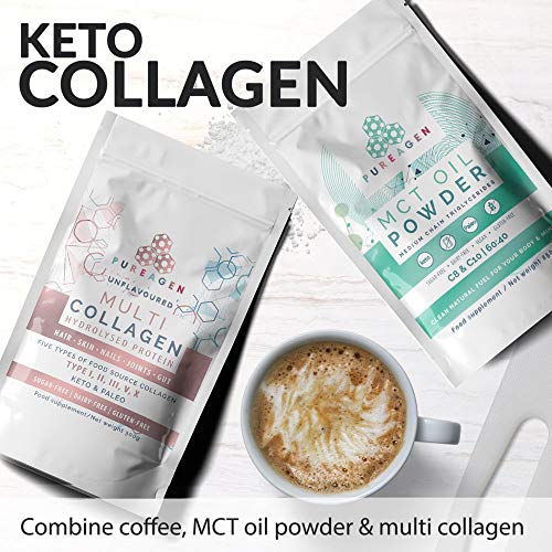 ✔️Type V. contributes to the bone matrix, corneal stroma, and the interstitial matrix of muscles, liver, & lungs. Multi collagen protein powder blended with MCT oil powder is a complete, super-natural diet workout smoothie, often used in sports nutrition and by athletes to increase muscle mass & improve physical performance, It is also needed to produce the surface of cells, which is very important for supporting gut health and healing the digestive lining