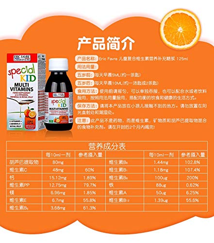 The SPECIAL KID range will bring to your children a soft and effective help without grimace with our delicious tastes. Vitamins B5,B9 C and PP contribute to reduce fatigue. Vitamins B8, B1 and B2 contribute to the normal functioning of the nervous system. Vitamins B12 and B6 contribute to the normal functioning of the immune system. Vitamin E contributes to protect cells against oxidative stress.