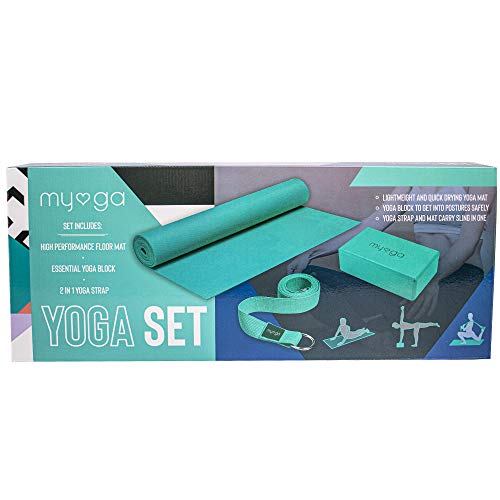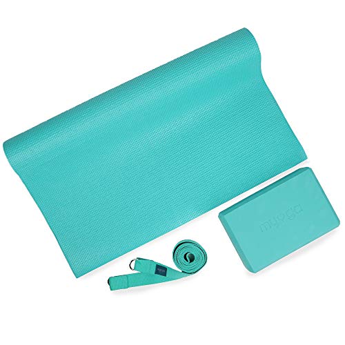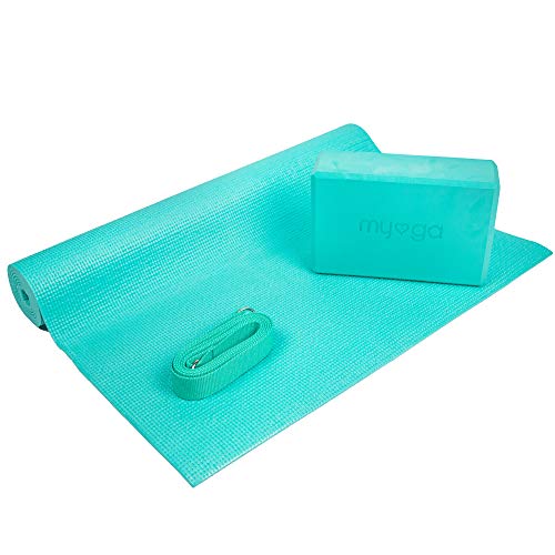 Myga Yoga Starter Set with Studio Yoga Mat, Yoga Block and Yoga Strap – Yoga Beginners Starter Kit