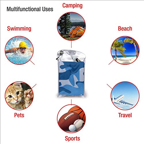 N/A Microfibre towel lightweight travel beach towel | Extra large quick drying camping towel Premium gym towels for swimming yoga | Highly absorbent fast dry | Blue Camo