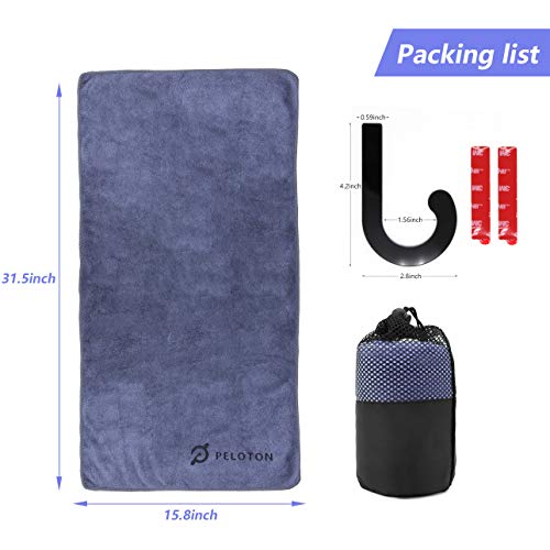 Naisi Towel Rack Hanger Hook + Microfiber Sport Towel Set for Peloton Bike (Grey)