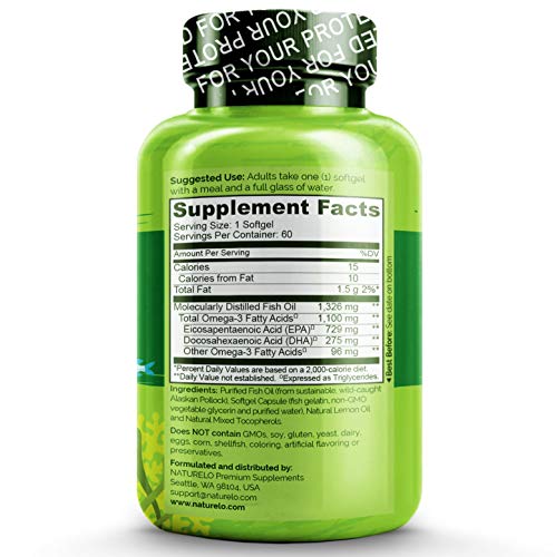 Be the first to review “NATURELO Omega-3 Fish Oil – 1100 mg Triglyceride Omega 3 – High Strength DHA EPA Supplement – Best for Brain, Heart, Joint Health – No Burps – Lemon Flavor – 60 Softgels | 2 Month Supply”
