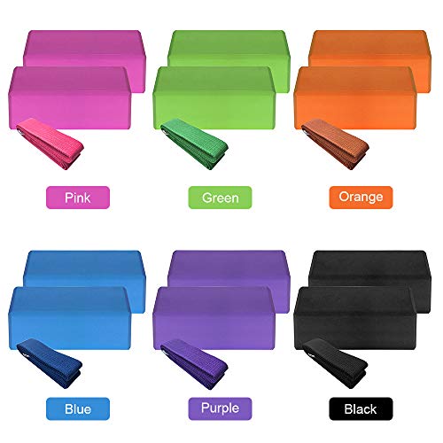 NOBRAND Yoga Equipment Set,2Pcs Yoga Blocks 1Pcs Cotton Yoga Strap Stability Blocks Yoga Strap Set For Yoga Pilates Meditation Sports Exercise Gym