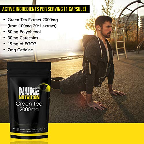Nuke Nutrition 2000mg Green Tea Capsules | Green Tea Extract aiding Super Strength and Slimming | Pure Herbal Extract Capsules | Green Tea Tablets for Weight Loss Diet Tablets | 60 Capsules