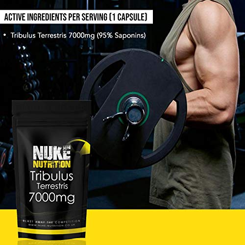 Nuke Nutrition Tribulus Terrestris Extract Capsules | Testosterone Booster for Men | 95% Saponin 7000mg Tablets | Testosterone Supplements for Men | Tribulus Terrestris Capsules | 60 Capsules