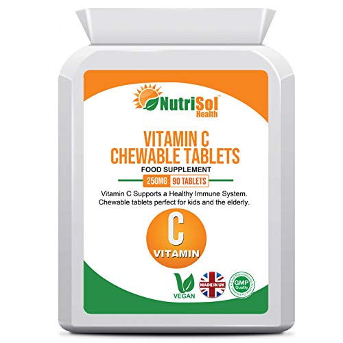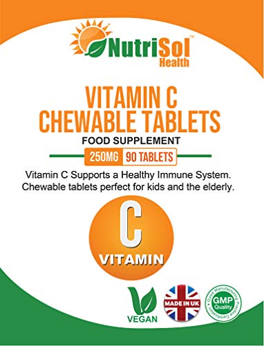 NutriSol Health Vitamin C Chewable Tablets 90 Tablets, 250mg, Immune Support Supplement, Children, Elderly, Adults…