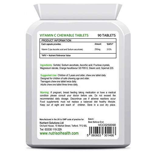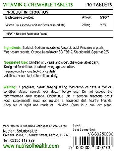 NutriSol Health Vitamin C Chewable Tablets are manufactured in the UK to GMP code of practice and ISO 9001 quality assurance certification.