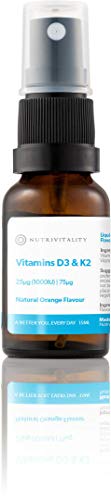 Nutrivitality Liquid Vitamins D3 & K2 (Spray Bottle) – Highest Absorption, 25µg/75µg, 15ml, 40 doses | Calcium Uptake…