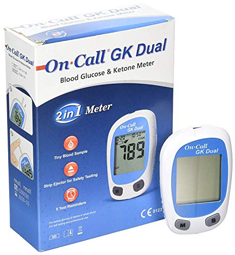 Monitor only pack of On Call dual GK system. P!ease note all buyers this manufacturers pack only contains a digital-meter batteries on call ketone control solution and instruction manual. To start testing you will need to buy OnCall Chosen brand blood glucose test strips or OnCall blood ketone test strips. You will also need lancets and a lancing device