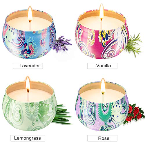 The aromatherapy candle gift set includes 4 fragrances : Rose, Lavender, Vanilla,Lemongrass.