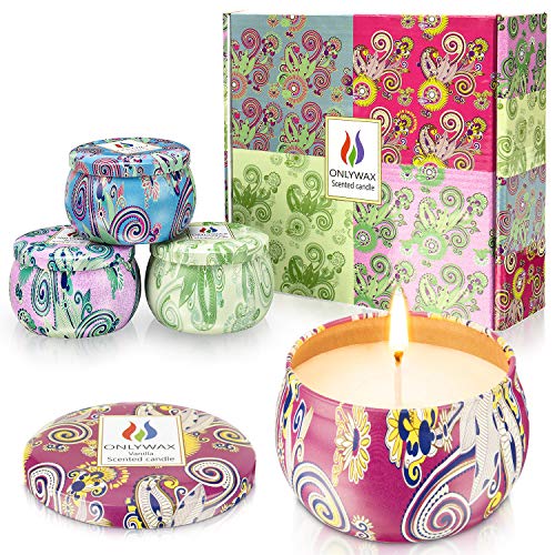 Onlywax Pack of 4 x 125 Grams Scented Candles, Soy Wax Aromatherapy Candle Gift Set, Rose, Lavender, Vanilla,Lemongrass