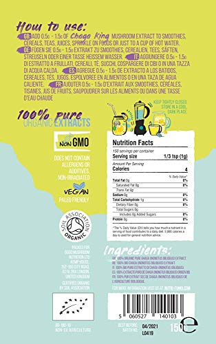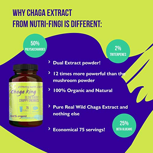 ✔️✔️✔️ 3RD PARTY DUAL-TESTED. We test our products for purity as well for an active ingredient so we can prove both ORGANIC + FUNCTIONALITY: 50% Pure Chaga polysaccharides + 25% Chaga Beta-Glucan +2% Chaga Triterpenes