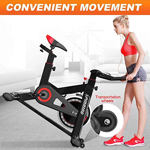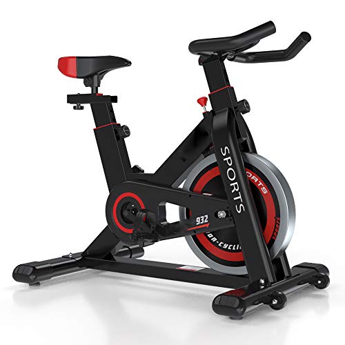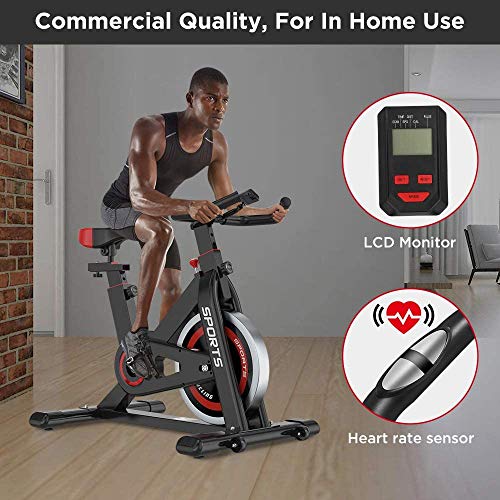 OUNUO Indoor Cycling Exercise Bikes for Home Gym Use with Heart Rate Monitor, LCD Display, Pulse Sensors, Large Bidirectional Flywheel, Belt Drive, Infinite Resistance (2020 Upgraded Version 932)