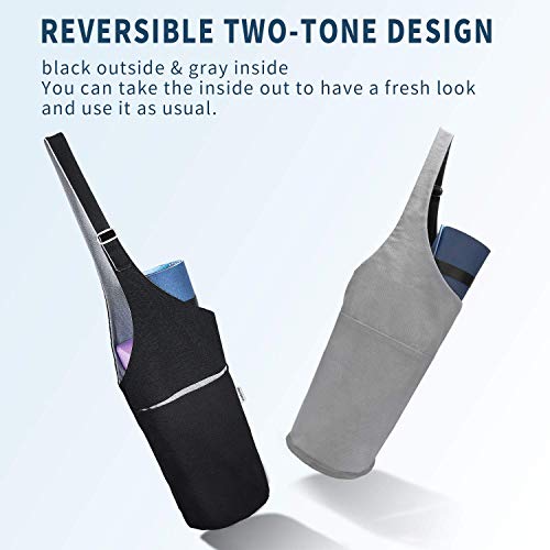 PACEARTH Yoga Mat Bag Larger Size with Side and Zipper Pocket to Hold More Yoga Accessories Reversible Two-Tone Yoga Mat Long Tote Sling Carrier Stylish Yoga Mat Holder for Women Fits Most Size Mats