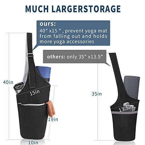 【Much Larger Storage】The yoga tote bag is 40″ x15 ” (larger than than the general 35 “x13.5”), so your can store a thicker yoga mat, yoga blocks or other yoga equipment & accessories. With the large main pocket, your yoga mat won’t fall out and even a 1/2’’ thick yoga mat can be taken out easily. A perfect gift for yoga lovers!