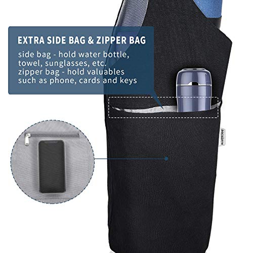 【Extra Side Bag & Zipper Bag】There is an extra side bag for the yoga mat tote where you can hold water bottle, towel, sunglasses, etc. There is a also zipper bag inside for valuables such as phone, cards and keys.30-day money-back guarantee for any reason, 12-month warranty for quality-related issues. We strive to provide each customer with the highest standard of customer service.
