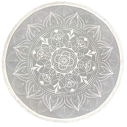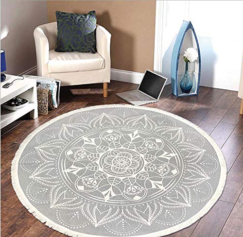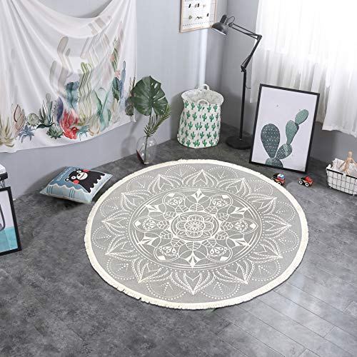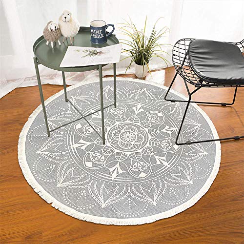 Pauwer 120 cm Round Cotton Area Rug with Tassel Hand Woven Machine Washable Floor Carpet Rug for Living Room Bedroom Kitchen Room