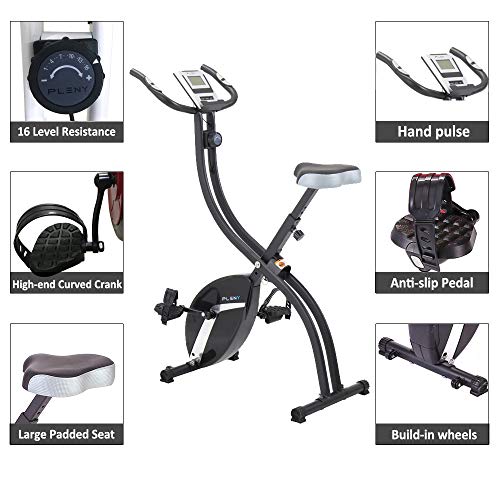 PLENY Foldable Fitness Exercise Bike with 16 Level Resistance, Hand Pulse