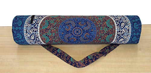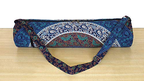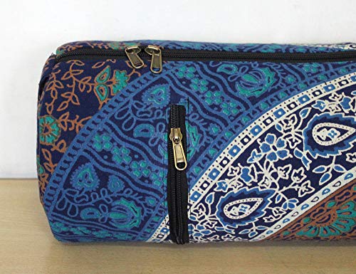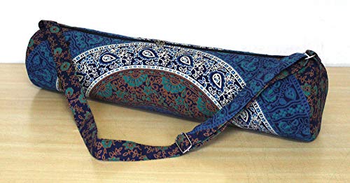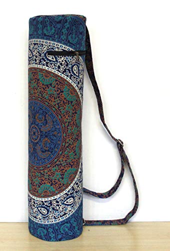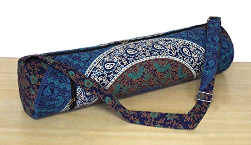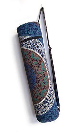 Beautiful throw/wall hanging Make traveling to and from yoga class easier and far more stylish with this chic mat carrying bag. This 100% cotton bag will keep your yoga or Pilates mat clean and dry while making it a cinch to carry, thanks to the comfortable shoulder strap. The handy back pocket is perfect for your phone. A gorgeous, artisan-crafted fabric featuring an intricate mandala design adds a chic touch to this carrier.