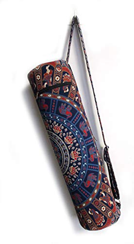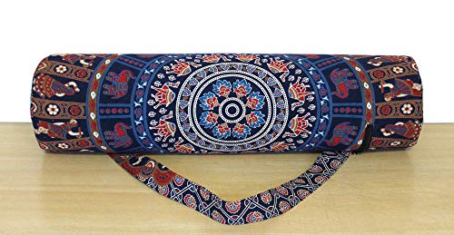 Popular Handicrafts Indian Mandala Gujri Exercise Yoga Mat Carry Bag Tote Carrier Full Zip with Shoulder Strap Bag Hippie Blue Multicolor
