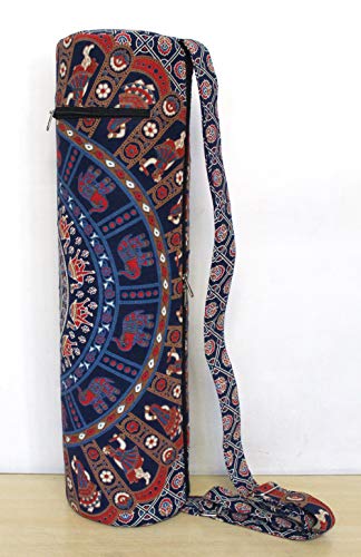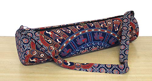 Beautiful throw/wall hanging Make traveling to and from yoga class easier and far more stylish with this chic mat carrying bag. This 100% cotton bag will keep your yoga or Pilates mat clean and dry while making it a cinch to carry, thanks to the comfortable shoulder strap. The handy back pocket is perfect for your phone. A gorgeous, artisan-crafted fabric featuring an intricate mandala design adds a chic touch to this carrier.