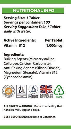 Bulking Agents (Microcrystalline Cellulose, Calcium Carbonate), Anti-Caking Agents (Silicon Dioxide, Magnesium Stearate), Vitamin B12.