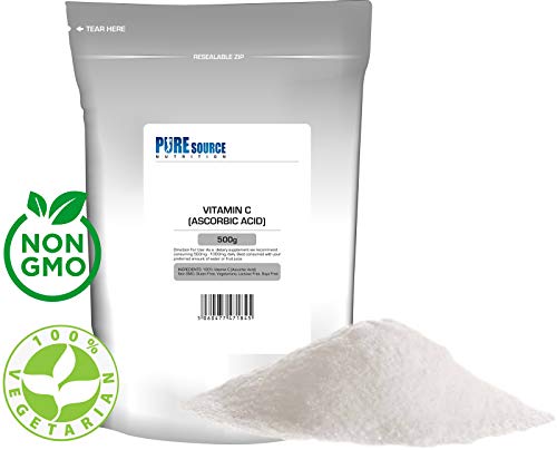 PSN Vitamin C Powder 500g – 100% Pure L-Ascorbic Acid British Pharmaceutical Grade Ascorbic Acid Highest Grade Non GMO