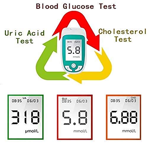 Qazxc Cholesterol Monitors, 3in1 Blood Glucose,Uric Acid,Cholesterol Meter Household Glucometer Diabetes Gout Tester with Test Strip Analyze (Size : B)