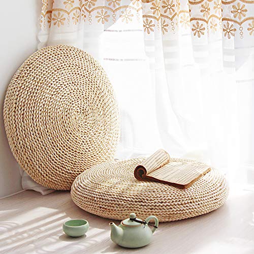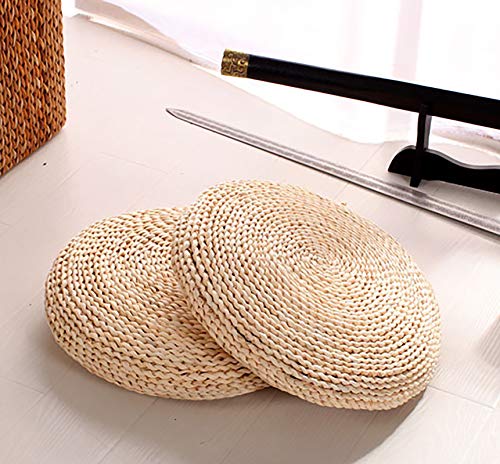 qq Woven Straw Cushion, Handmade Chair Cushion, Yoga Seat Cushion, Meditation Pad, Hand Woven Tatami Floor Cushion, Knitted Straw Flat Seat Cushion for Bedroom Living Room(40 x 17cm)