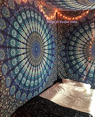raajsee Large Blue Floral Mandala Tapestry Wall Hanging,Indian Cotton Beach Throw Blanket Hippie Bohemian Elephant Queen Bedding, Dorm Decor Boho Meditation Yoga Mat Rugs,A 210x220cm