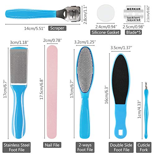 ✔️FULLY FUNCTIONAL- Foot file hard skin remover is all in one pedicure tool set with callus remover, cuticle remover, foot file, nail file, foot scraper and replacement etc. Different manicure pedicure tools to meet your different needs