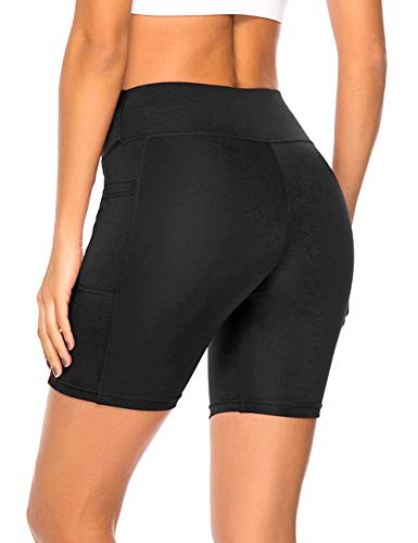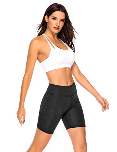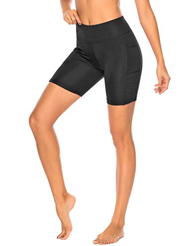 RIOJOY Running Gym Shorts for Women High Waist Tummy Control Fitness Sports Cycling Yoga Short with Side Pocket