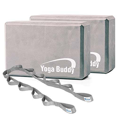 Roller Buddy Yoga Block Stretch Out Strap Set – Yoga Blocks 2 Pack with Physical Therapy Equipment Stretch Band, Yoga Bands, Yoga Accessories