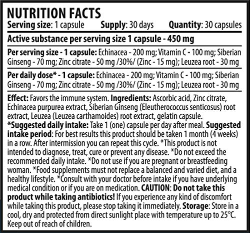 ✅ 100% Natural Herbal supplement containing; Echinacea purpurea extract, Zinc, Vitamin C, Siberian Ginseng and Leuzea root extract