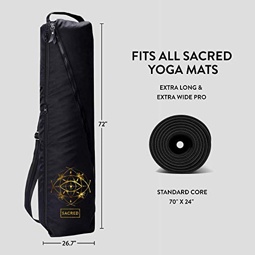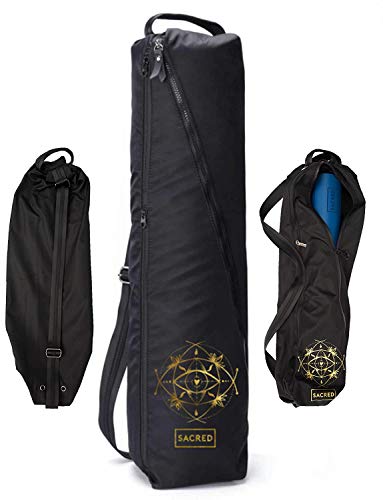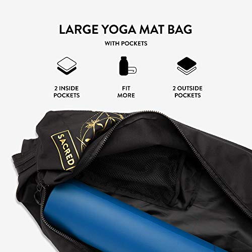 Sacred Pro Yoga Mat Carrying Bag Super Durable Waterproof Fabric – Extra Pockets and Sturdy Zippers – Adjustable Strap – Black Yoga Mat Case