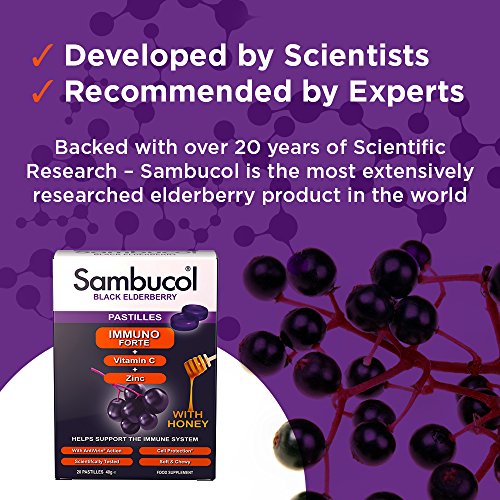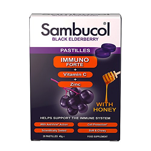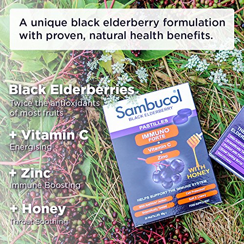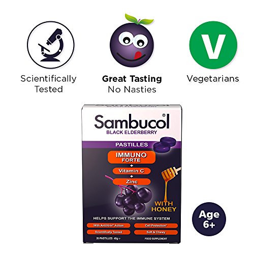 DELICIOUS, NATURAL & NON-DROWSEY – Sambucol is a range of great tasting food supplements founded on the unique qualities of Black Elderberries. Sambucol Immuno Forte Pastilles are soft and chewy with soothing throat action and suitable for Vegetarians