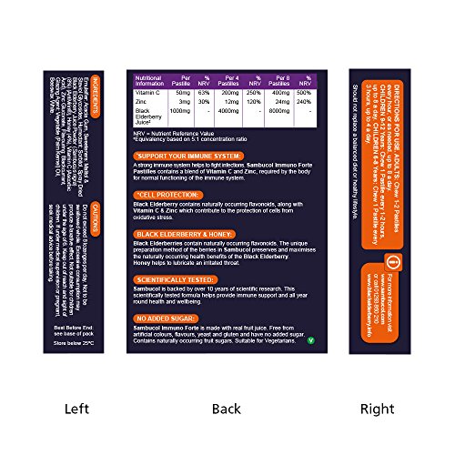 FAMILY IMMUNE SUPPORT – Sambucol Immune Forte Chewable Pastilles contains Black Elderberries as well as Vitamin C, Zinc and Honey to help support the immune system. Suitable for adults and children aged 6+, perfect for all-year-round family immune support