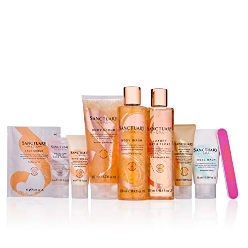 This signature gift for her comes with Sanctuary classic favourites, including shower gel, body scrub, body lotion, bubble bath, face wash, hand cream and foot cream