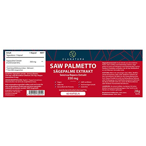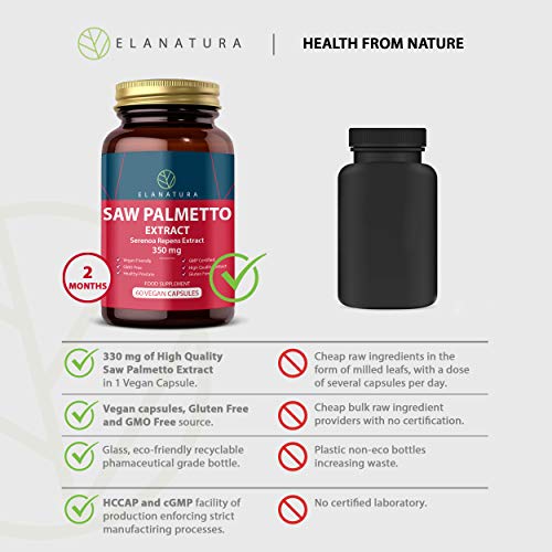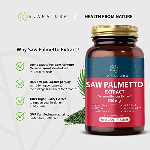 ✔ ONE CAPSULE DAILY – one capsule contains 330 mg of Saw Palmetto 45% extract from berries. The extract is rich in phytosterols and has shown benefits for prostate health. One Saw Palmetto capsule daily for 2 months supply. each capsule contains high quality Serenoa Repens Extract (standardized to maximum strength of 45%) and is suitable for vegans with its cellulose structure.