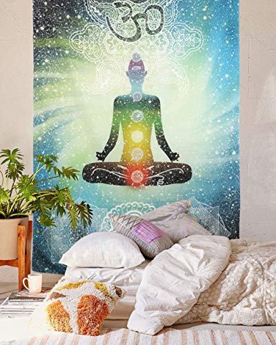 Shukqueen Indian Wall Hanging Tapestry, Hippie Mandala Zen Meditation HD Printed Tapestry, Wall Art, Bedspread, Couch Cover, Dorm, Home Decor, Beach Blanket, Gifts (57″ x 78″, Dhyana)
