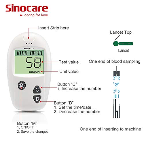 🎁 Blood Glucose Testing Kit: This Kit including-Sinocare blood glucose monitor Safe-Accu & Strips x 50 & Lancets x 50 & Painfree lancing device & Case & User manual. A set of equipment to meet all your needs when measuring blood sugar.