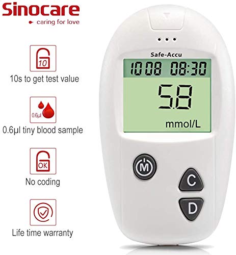 sinocare Diabetes Testing Kit/Blood Glucose Monitor Safe Accu/Blood Glucose Sugar Test Kit with Codefree Strips x 50 & Case for UK Diabetics -in mmol/L