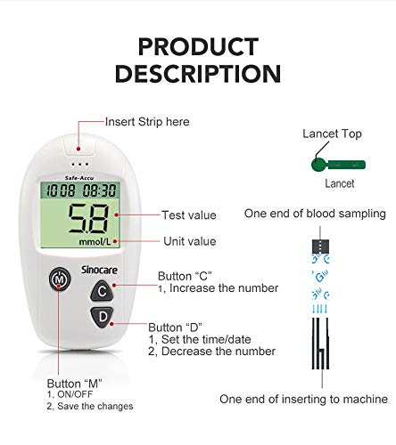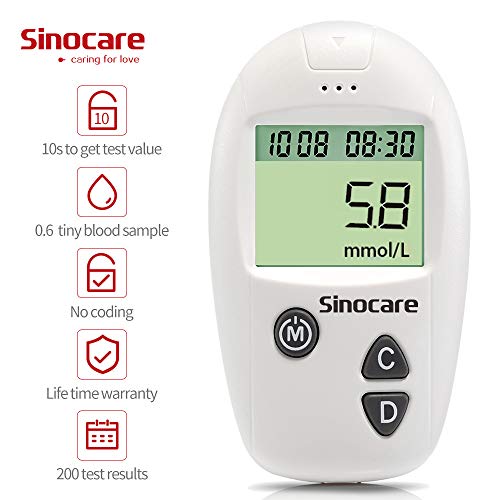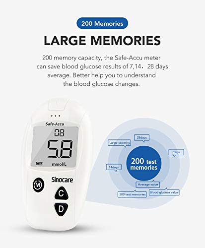 sinocare Diabetes Testing Kit/Blood Glucose Monitor Safe Accu/Blood Glucose Sugar Test Kit with Separated Test Strips Free x 10 & Case for UK Diabetics -in mmol/L