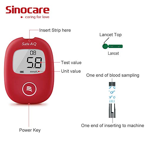 🎁 Blood Glucose Testing Kit: This Kit including-Sinocare blood glucose monitor Safe AQ Smart & Strips x 50 & Lancets x 50 & Painfree lancing device & Case & User manual. A set of equipment to meet all your needs when measuring blood sugar.