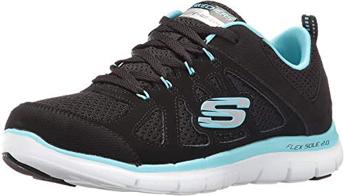 Skechers Women’s Flex Appeal Simplistic Sneaker, Black Turquoise, 5 UK