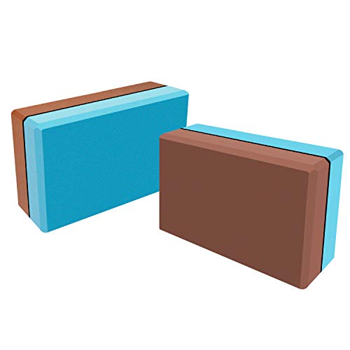 SZOCOOL Double Colored Yoga Blocks (2 Packs), High Density EVA Foam Soft Non-Slip Supportive Surface for Yoga, Pilates, Meditation, Improve Strength and Aid