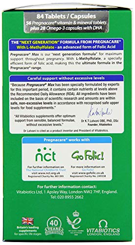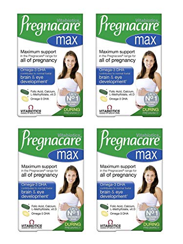 Pregnacare Max offers the ultimate formula in the range for mums-to-be who want the maximum nutritional support from Pregnacare. This advanced formula helps to safeguard daily intake of important nutrients during pregnancy. The dual pack provides 400mcg folic acid the exact level recommended by the UK Department of health, incorporating the special, readily bioavailable form L- Methylfolate. Supplemental folic acid intake increases maternal folate status. Low maternal folate status is a risk factor in the development of neural tube defects in the developing foetus. It includes other essential vitamins and minerals, including 10mcg vitamin D and 500mg Calcium. The pack also contains a 300mg Omega-3 DHA capsule for normal foetal brain and eye development. Pregnacare max tablets have been carefully formulated by experts to safeguard nutritional requirements during all of pregnancy.